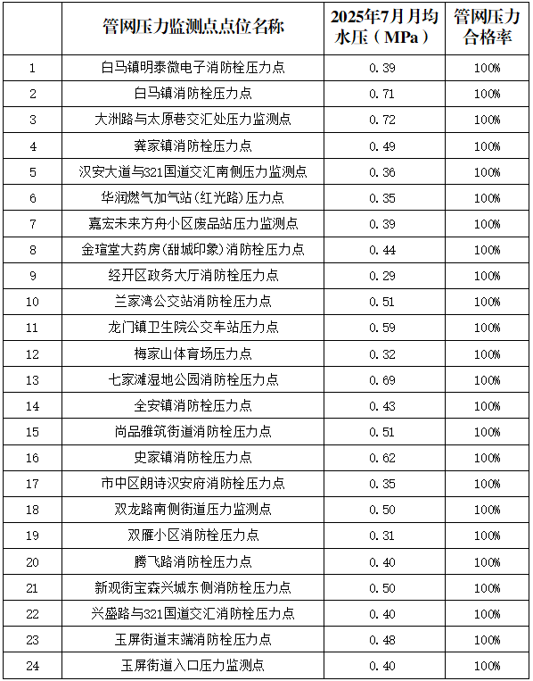 內(nèi)江市水務有限責任公司2025年7月管網(wǎng)壓力月報
