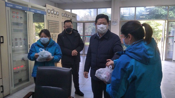 2月19日上午,市國資委黨委書記、主任黎斌深入二水廠慰問供水一線員工。公司領導吳芝奇、李濤陪同慰問。