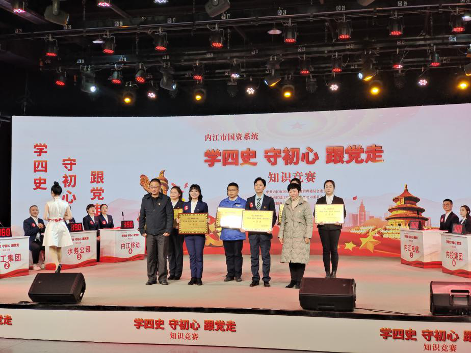 2021年12月28日下午,由中共內(nèi)江市國(guó)有資產(chǎn)監(jiān)督管理委員會(huì)委員會(huì)主辦,中共內(nèi)江建工集團(tuán)有限責(zé)任公司委員會(huì)承辦的內(nèi)江市國(guó)資系統(tǒng)“學(xué)四史 守初心 跟黨走”知識(shí)競(jìng)賽在內(nèi)江廣播電視臺(tái)演播大廳舉行。來(lái)自市級(jí)各企業(yè)的8支隊(duì)伍24名選手參賽,我司選派的劉梅、袁琳、熊瑞凱3名同志代表參加了此次競(jìng)賽。