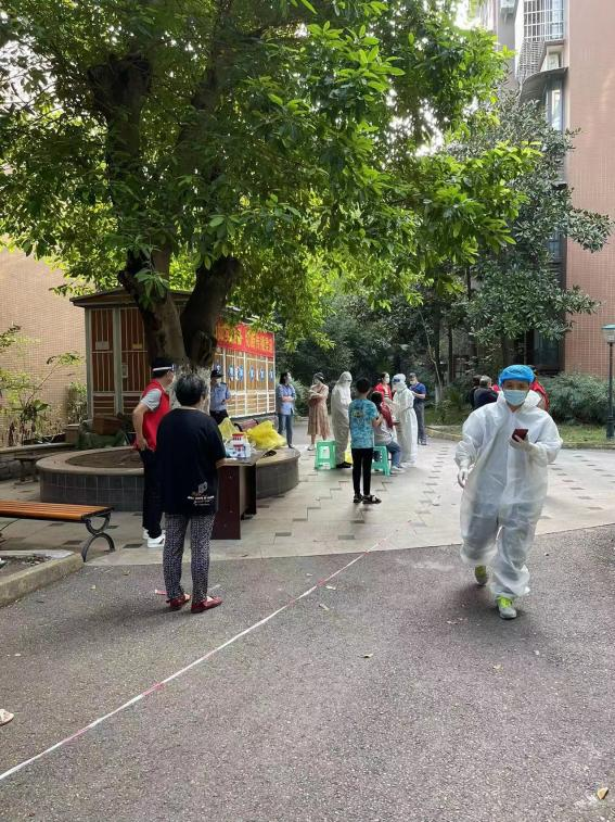 支部宣傳委員倪勇帶頭,與第六黨支部黨員余川、楊華文,水務(wù)公司退休黨員何蜀治、王萍在天河街小區(qū)組建成臨時黨支部,全力以赴投入到小區(qū)抗疫一線工作中,協(xié)助社區(qū)工作人員填寫和分發(fā)通行證,在核酸檢測點(diǎn)維持秩序。黨員熊瑞楷積極加入盧浮春天小區(qū)業(yè)主委員會,參與送黃碼人員到就近醫(yī)院做核酸檢測、分發(fā)通行證、維持核酸檢測現(xiàn)場排隊秩序、護(hù)送出門看病或開生活超市的特殊人群外出等工作;黨員楊艷、王曉東、廖玲三名同志分別在靈秀清風(fēng)苑、恒祥嘉苑、歐城印象小區(qū)擔(dān)任十戶長,協(xié)助小區(qū)物業(yè)上門通知每戶居民做核酸。