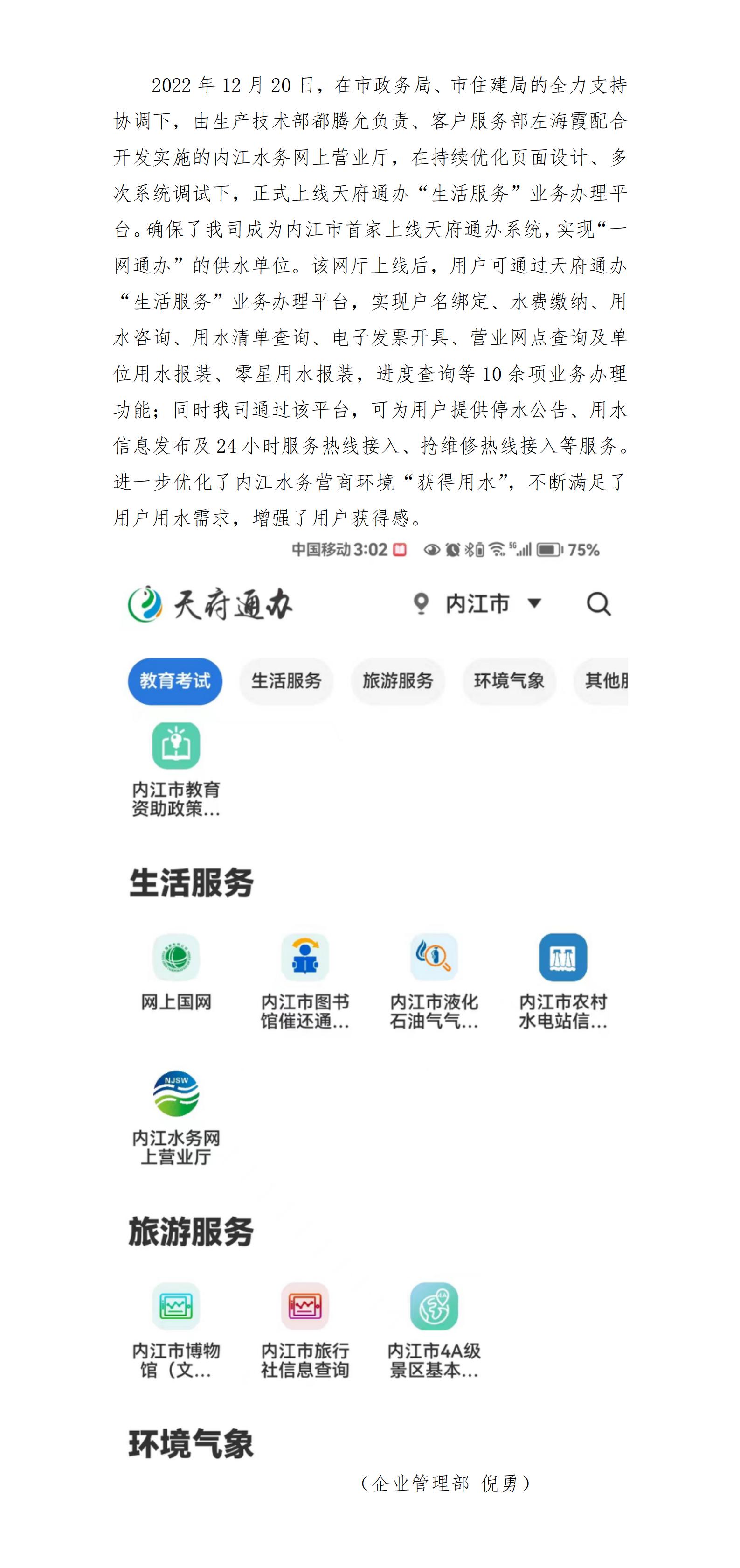 “讓數(shù)據(jù)多跑路,用戶少跑路” 內(nèi)江水務(wù)網(wǎng)上營(yíng)業(yè)廳正式上線天府通辦平臺(tái)