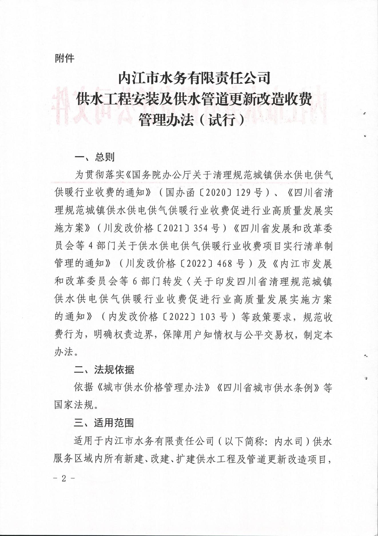 內(nèi)江市水務(wù)有限責(zé)任公司供水工程安裝及供水管道更新改造收費(fèi)管理辦法(試行)